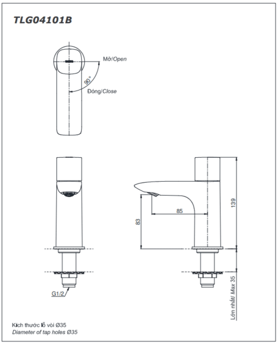 Bản vẽ Vòi Lavabo TOTO TLG04101B#BBR Lạnh