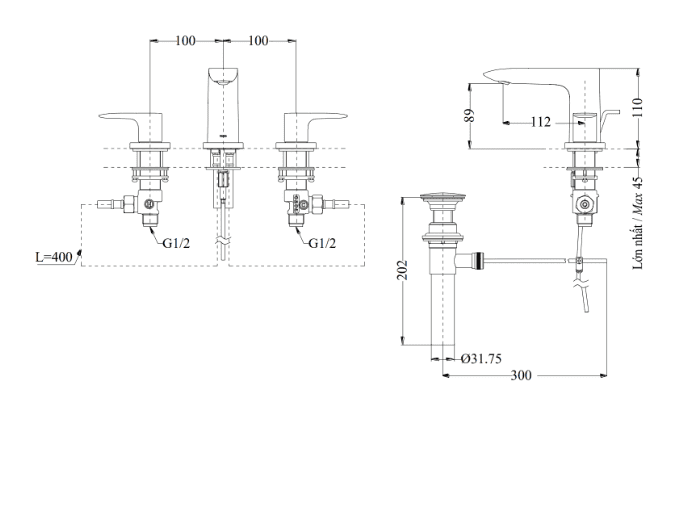 Bản vẽ Vòi Lavabo TOTO TLG04201B