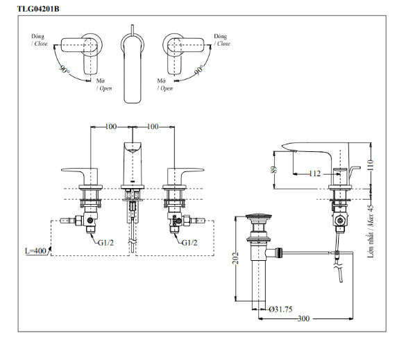 • Áp lực nước: 0.05MPa ~ 1.0MPa