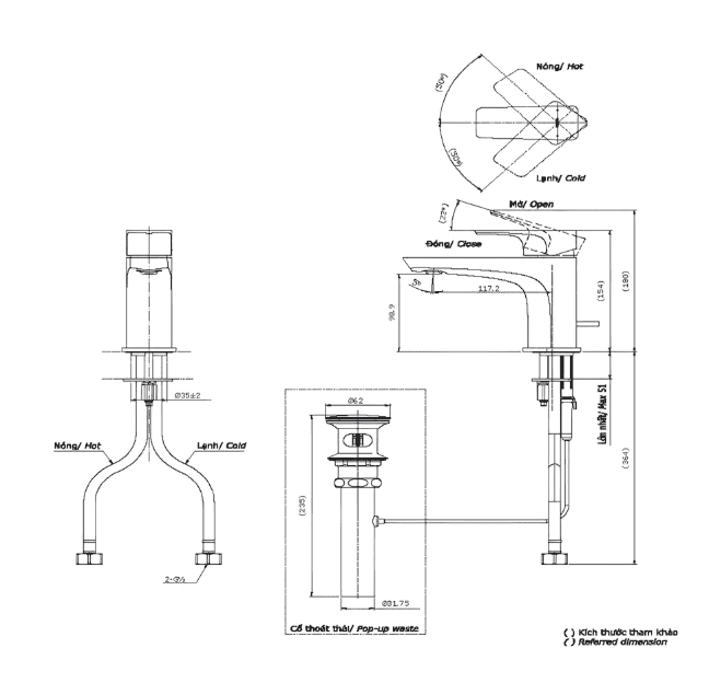 • Bao gồm bộ xả nhưng không gồm ống thải chữ P