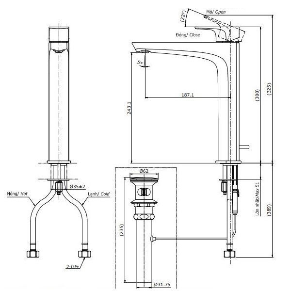 Tham khảo thêm bản vẽ kỹ thuật của TLG07305V để thuận tiện hơn trong việc lắp đặt ngay tại nhà nhé!