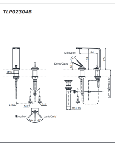 Thông số Vòi Lavabo TOTO TLP02304B#BFG Gật Gù Nóng Lạnh ZL