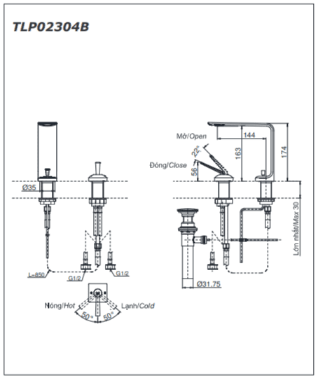 Thông số Vòi Lavabo TOTO TLP02304B#BN Gật Gù Nóng Lạnh ZL
