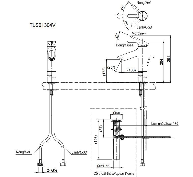 Xem thêm bản vẽ kỹ thuật của vòi rửa tay TOTO TLS01304V sau đây để thuận tiện hơn trong việc lắp đặt tại nhà nhé!