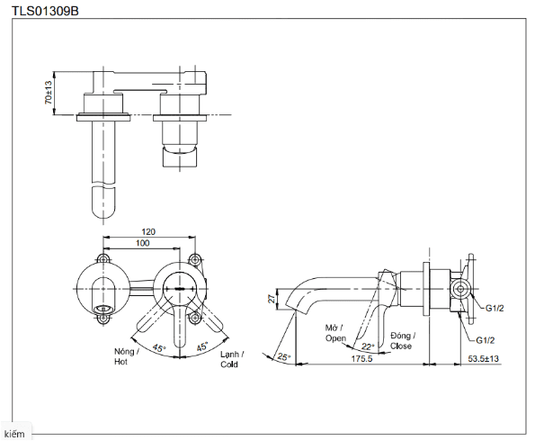 Thông số Vòi Lavabo TOTO TLS01309B Gật Gù Nóng Lạnh Gắn Tường LB (2 Lỗ)
