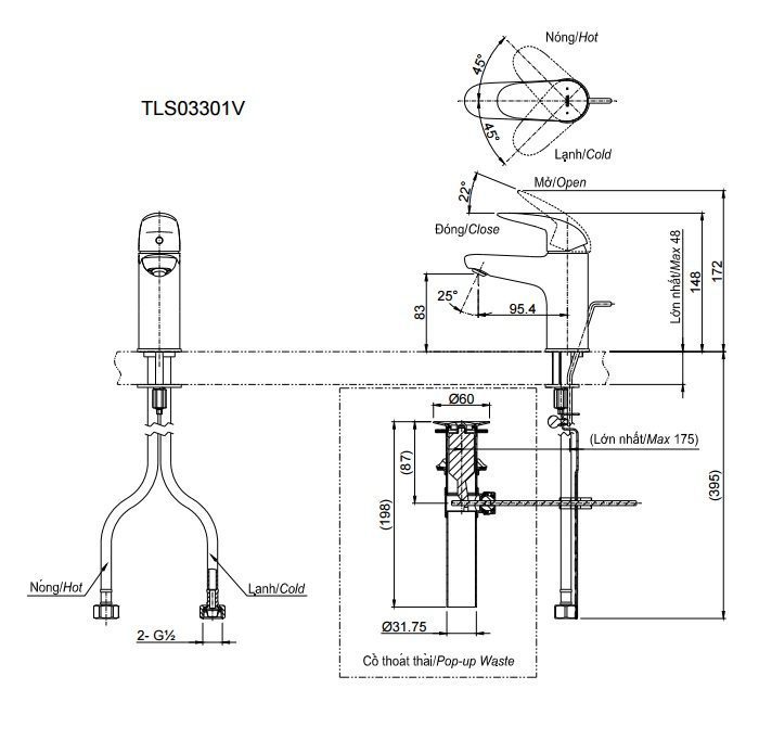 Lưu ý: Bao gồm bộ xả, không gồm ống thải chữ P