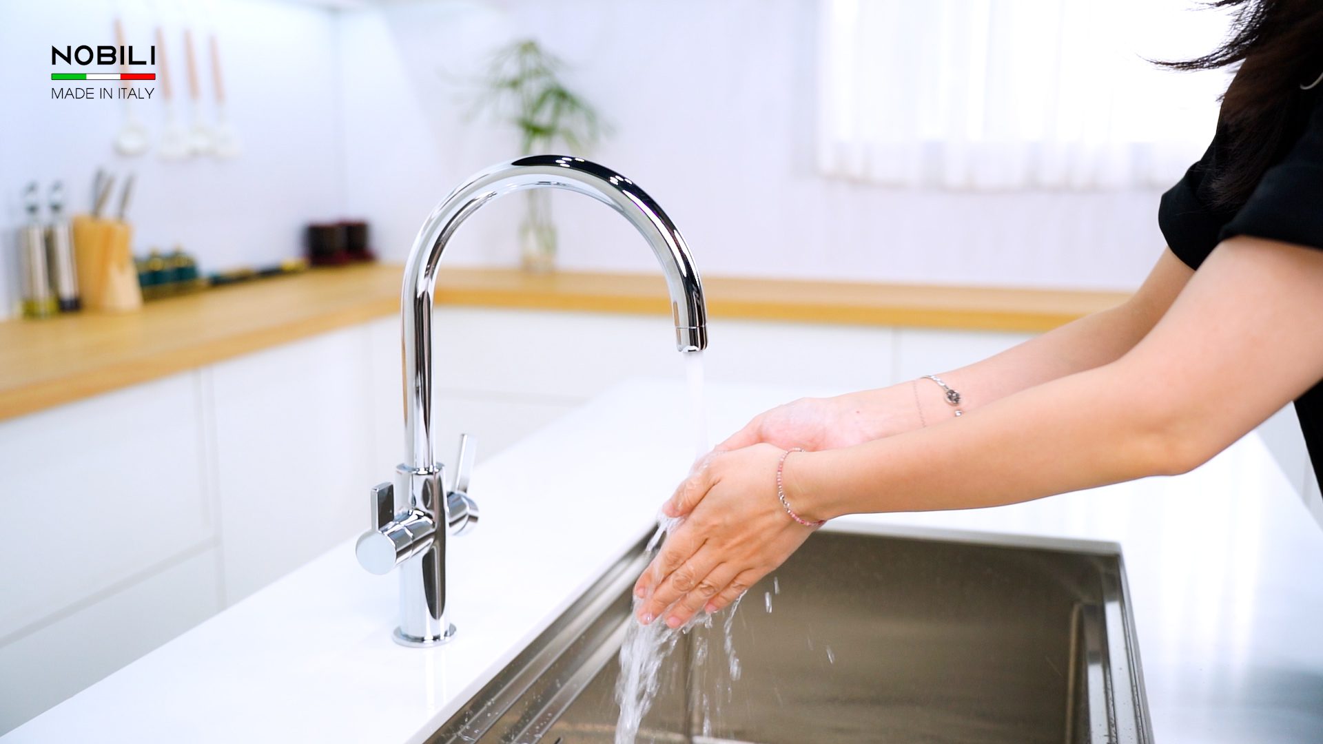 Sản phẩm vòi rửa bát nóng lạnh 3 đường nước Sora NB164 từ thương hiệu Nobili, xuất xứ 100% từ Ý, là sự kết hợp tinh tế giữa vẻ đẹp sang trọng, hiện đại và chất lượng vượt trội. Với thiết kế đơn giản nhưng thanh lịch, vòi bếp này không chỉ mang lại trải nghiệm sử dụng tuyệt vời cho người nội trợ mà còn góp phần tôn lên không gian bếp của bạn.
