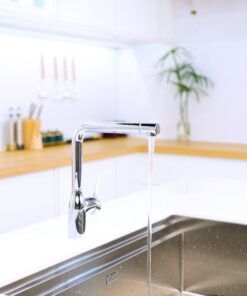 Điểm đặc biệt của vòi là khả năng xoay 180 độ, mang lại phạm vi tiếp cận rộng rãi và sự linh hoạt tối đa trong quá trình sử dụng bếp. Đầu vòi được thiết kế để tạo ra dòng nước mịn, giúp hạn chế bắn nước và mang lại cảm giác dễ chịu khi rửa. Chiều cao của vòi được tính toán kỹ lưỡng để phù hợp với mọi thao tác làm bếp.