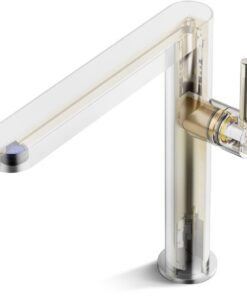 Về chất liệu, vòi được làm từ hợp kim đồng 62% chất lượng cao, đảm bảo không chứa chì, an toàn tuyệt đối cho sức khỏe người dùng. Bên cạnh đó, công nghệ mạ PVD được áp dụng để tạo màu cho bề mặt vòi, mang lại vẻ sáng bóng bền lâu và khả năng chống bám vân tay hiệu quả.
