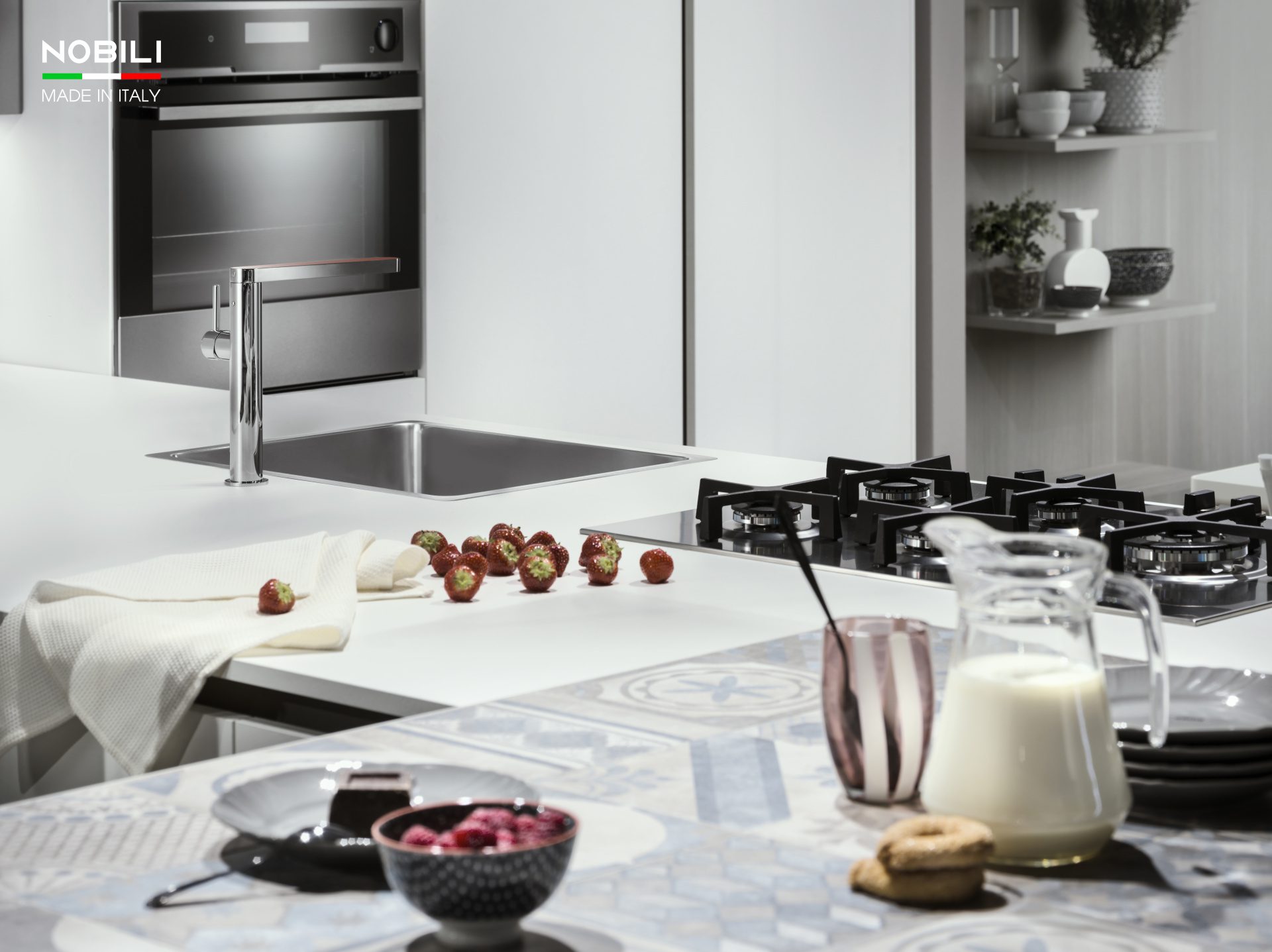 Tay vòi ngang của sản phẩm có khả năng di chuyển mượt mà và nhẹ nhàng, giúp tối ưu hóa không gian bàn bếp. Vòi tuân thủ nghiêm ngặt quy định DZR, sử dụng hợp kim đồng chất lượng cao, hoàn toàn không chứa chì, đảm bảo an toàn tuyệt đối cho sức khỏe người sử dụng. Vòi được đúc nguyên khối bằng hệ thống máy móc công nghệ cao ngay tại Ý. Lớp hoàn thiện đặc biệt giúp vòi có khả năng chống mài mòn và trầy xước một cách hiệu quả. Toàn bộ các linh phụ kiện của vòi đều được sản xuất tại trung tâm nội bộ của Nobili ở Ý, đảm bảo chất lượng và độ bền cao nhất.