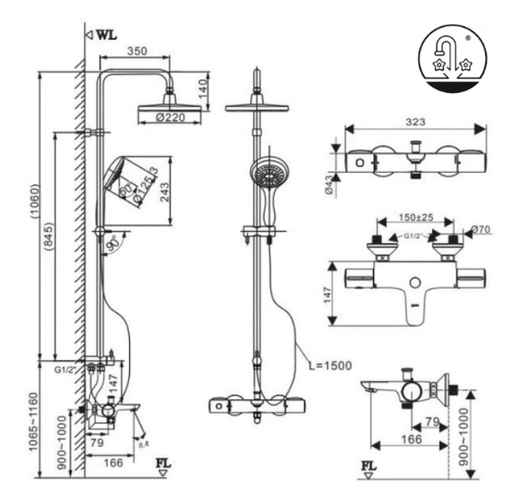 Tham khảo bản vẽ kỹ thuật sen cây INAX BFV-3415T-9C dưới đây trước khi tiến hành việc lắp đặt tại nhà nhé.