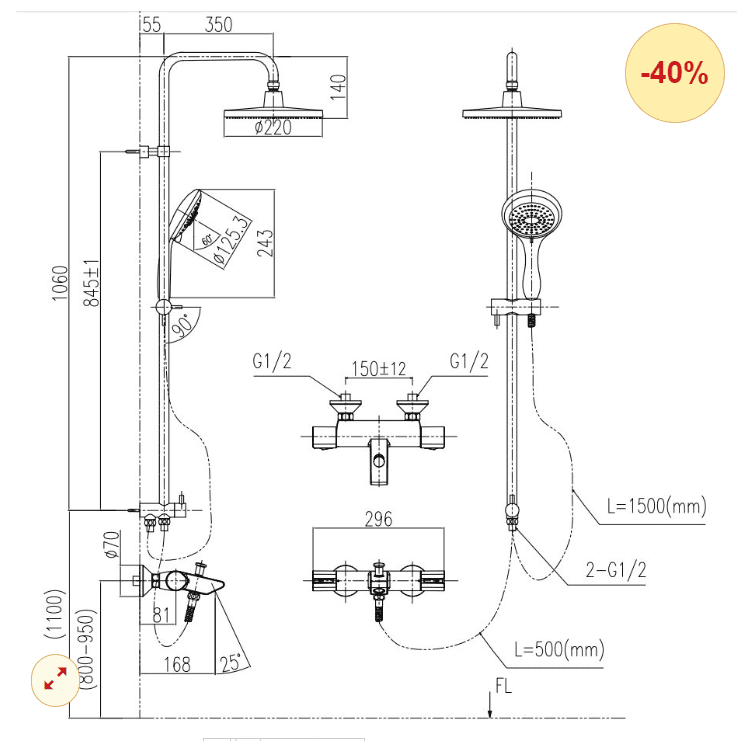 Thông Số Kỹ Thuật Của Vòi Sen Cây INAX BFV-6015S Nhiệt Độ