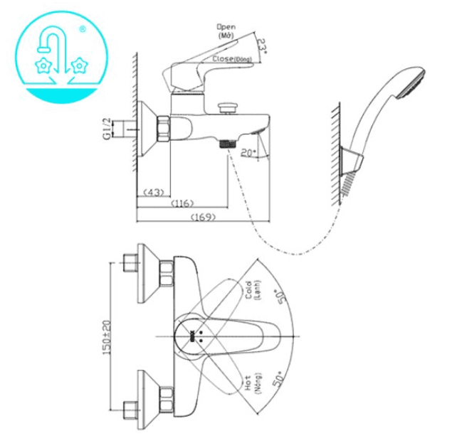 • Áp lực nước: 0.05 MPa ~ 0.75 MPa