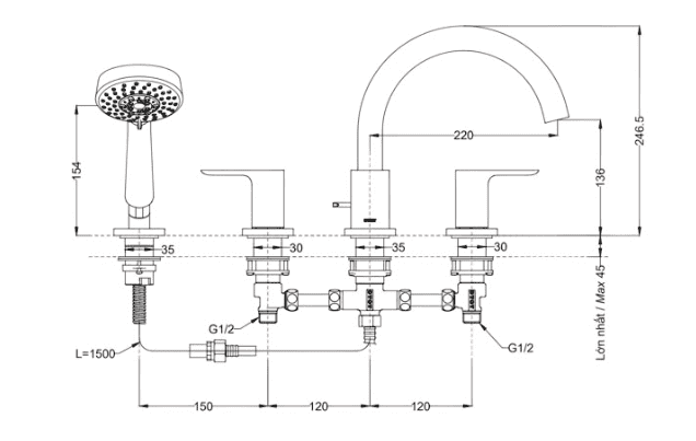 Review Vòi Xả Bồn TOTO TBS02202BA (TBS02202B) Nóng Lạnh Kèm Sen Tắm